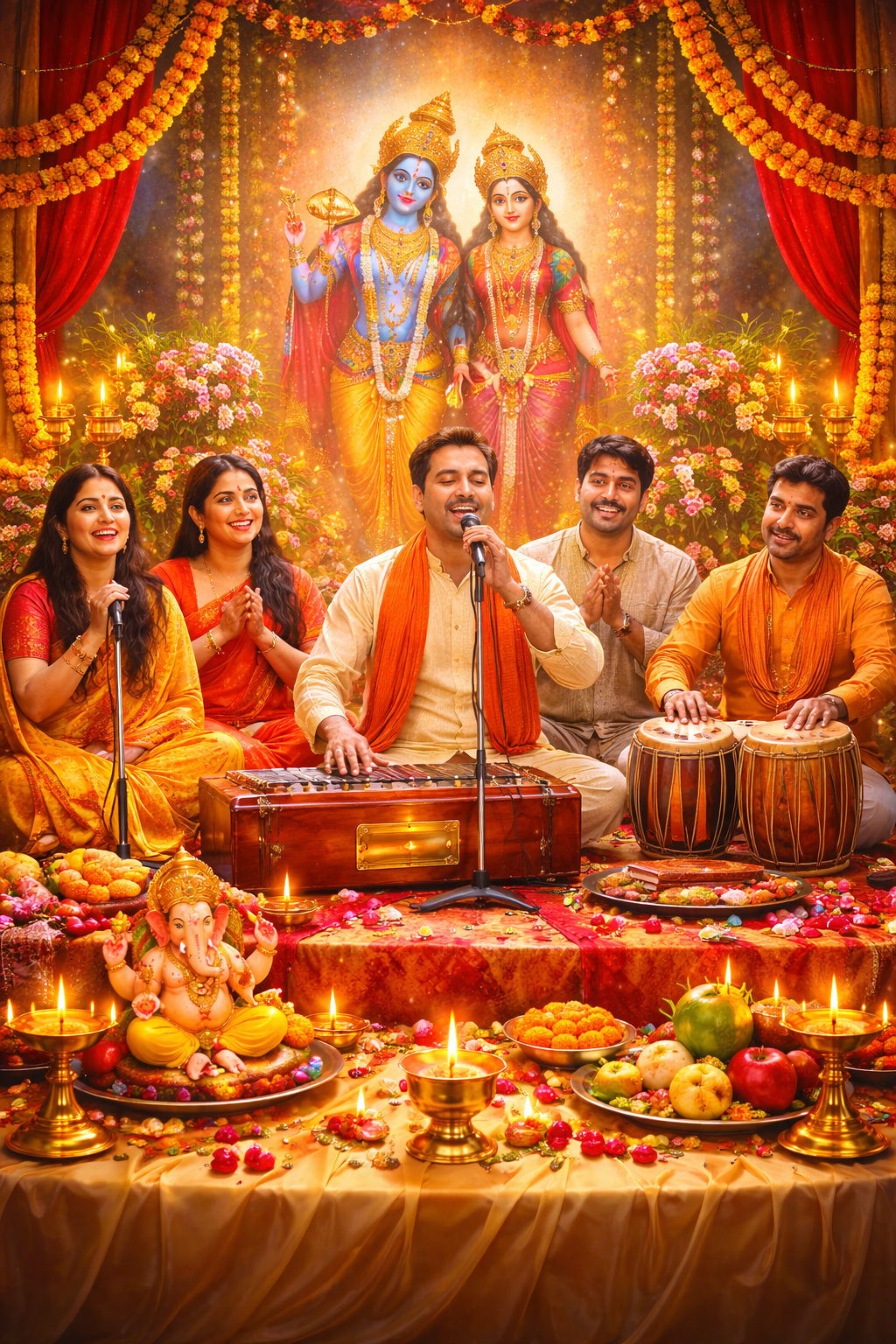 A traditional devotional group of singers and musicians who perform bhajans, kirtans, and aartis in praise of God.