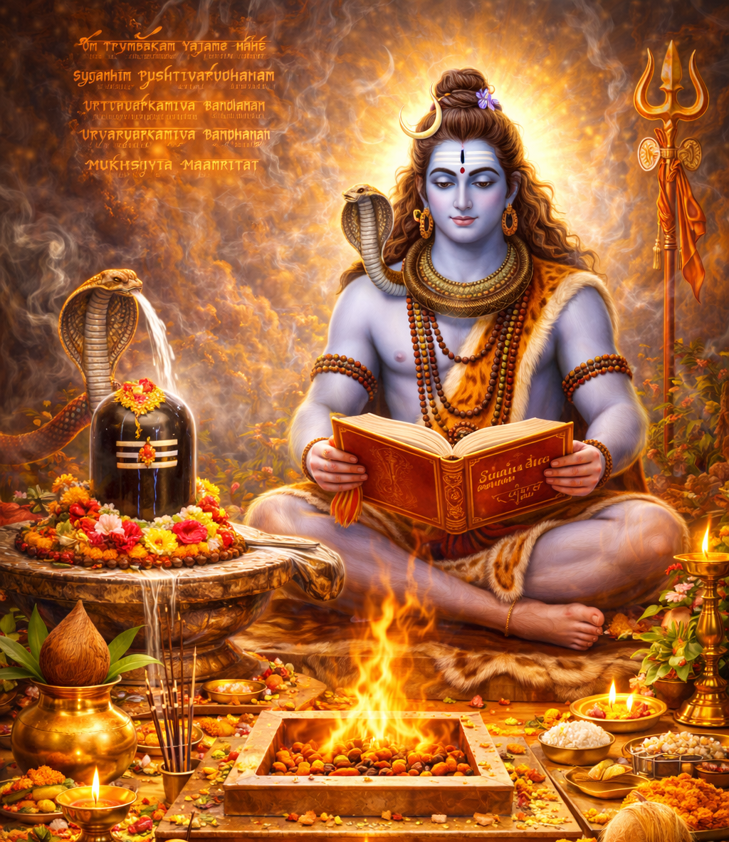 A sacred Vedic chanting dedicated to Lord Shiva, known as the conqueror of death.