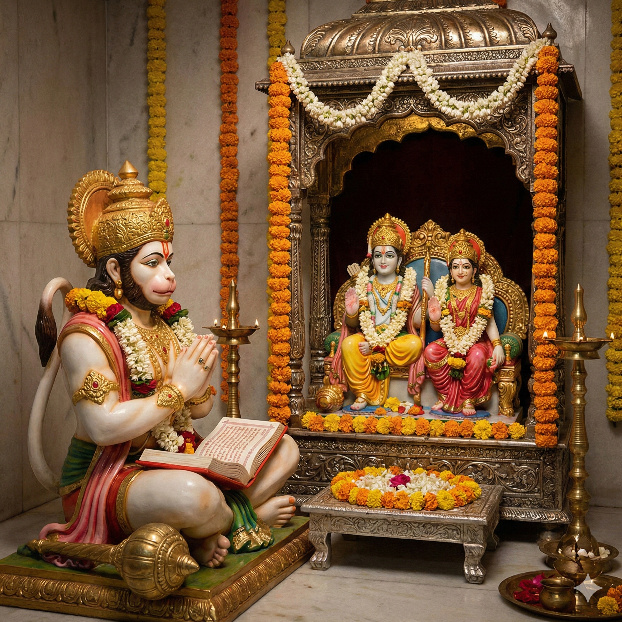 Sundarkand Path is the 5th chapter of the Ramayana, describing the divine journey of Hanuman ji to Lanka — finding Mata Sita, burning Lanka, and delivering Shri Ram’s message.
